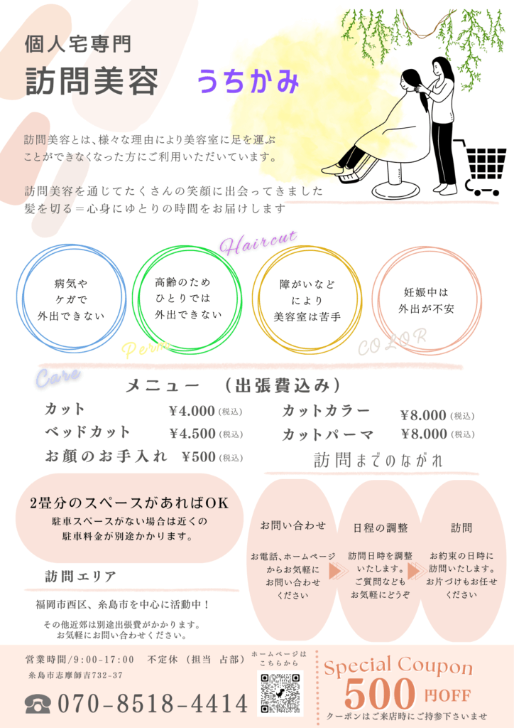 こんにちは!個人宅専門の訪問美容うちかみです。